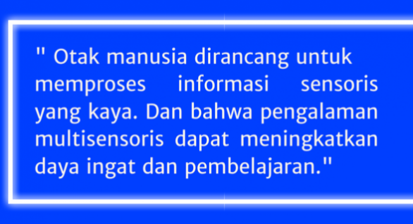 Pelatihan adalah proses untuk menyampaikan data yang harapannya dapat di ingat dan di praktikan oleh para peserta pelatihan. Untuk meningkatkan daya ingat itulah kami berusaha memberikan stimulasi yang kaya terhadap 6 indera tersebut sehingga materi yang disampaikan lebih mudah di ingat oleh para peserta.
